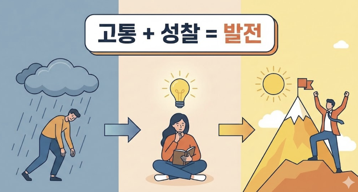 우리는 보통 힘들거나 실패하면 괴로워하잖아? 그런데 레이 달리오는 그 고통이 바로 성공의 열쇠라고 말해. 이 공식은 진짜 벽에 붙여놔야 해.